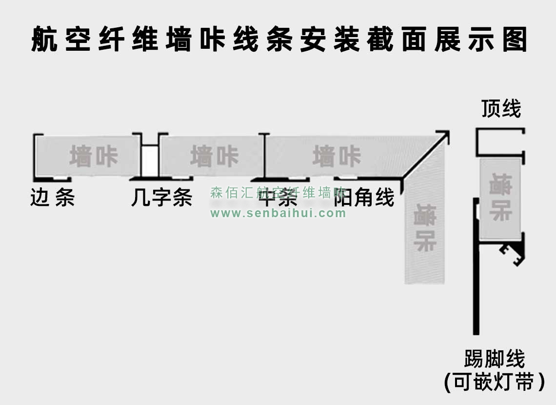 金华航空纤维墙咔铝合金带灯中条(哑黑氧化)